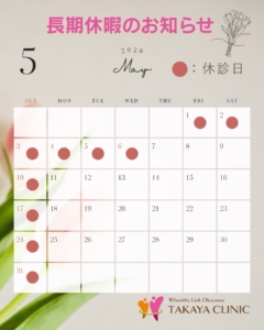 ゴールデンウィークは ▶︎4月29日(水)〜5月6日(水) 休診となります。
